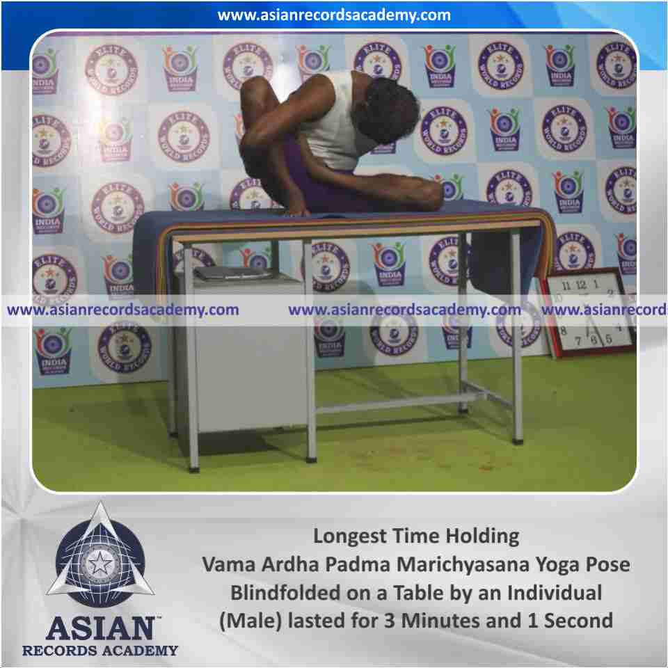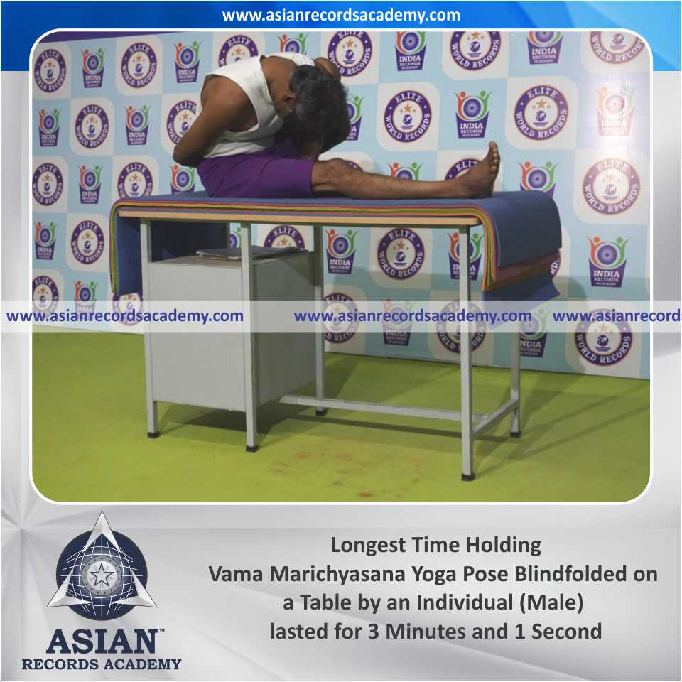 Longest Time Holding Vama Marichyasana Yoga Pose Blindfolded on a Table by an Individual (Male)
