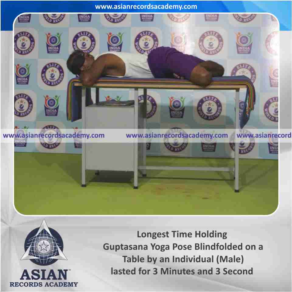 Longest Time Holding Guptasana Yoga Pose Blindfolded on a Table by an Individual (Male)