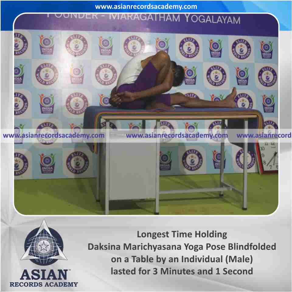 Longest Time Holding Daksina Marichyasana Yoga Pose Blindfolded on a Table by an Individual (Male)