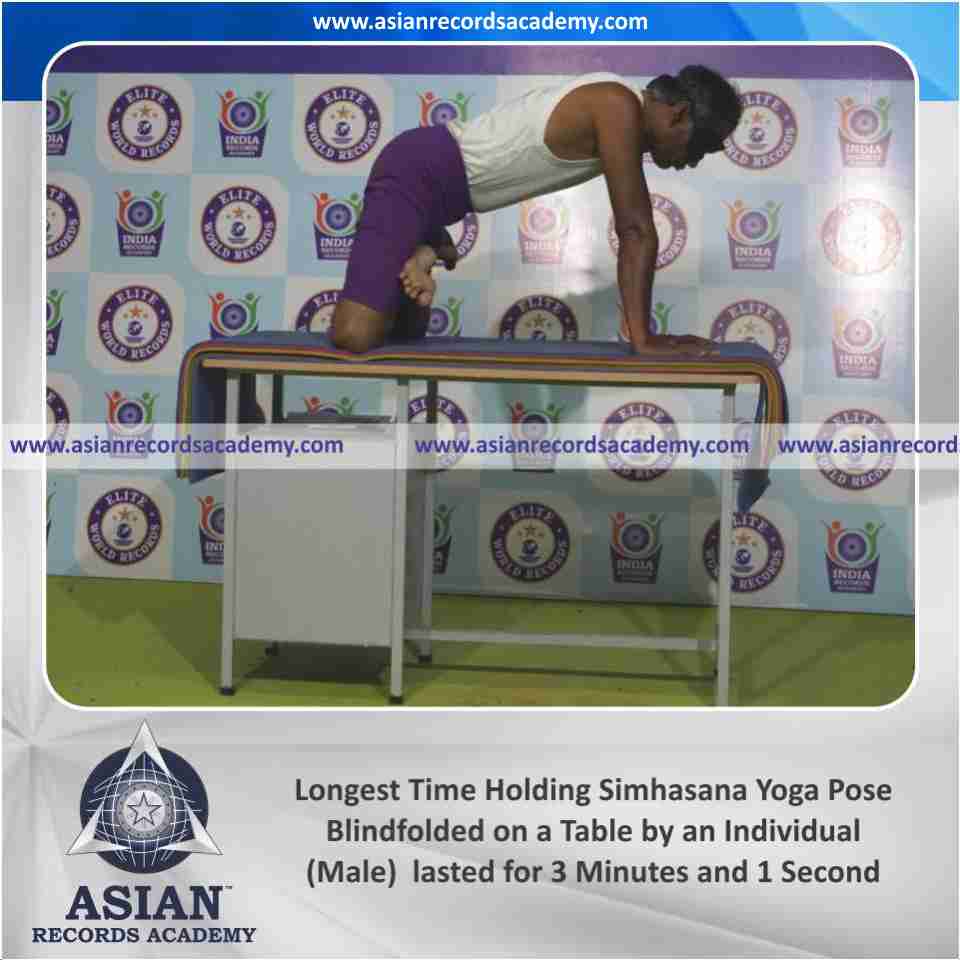 Longest Time Holding Simhasana Yoga Pose Blindfolded on a Table by an Individual (Male)