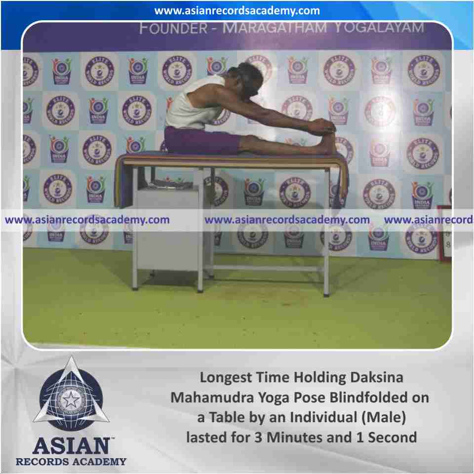 Longest Time Holding Daksina Mahamudra Yoga Pose Blindfolded on a Table by an Individual (Male)