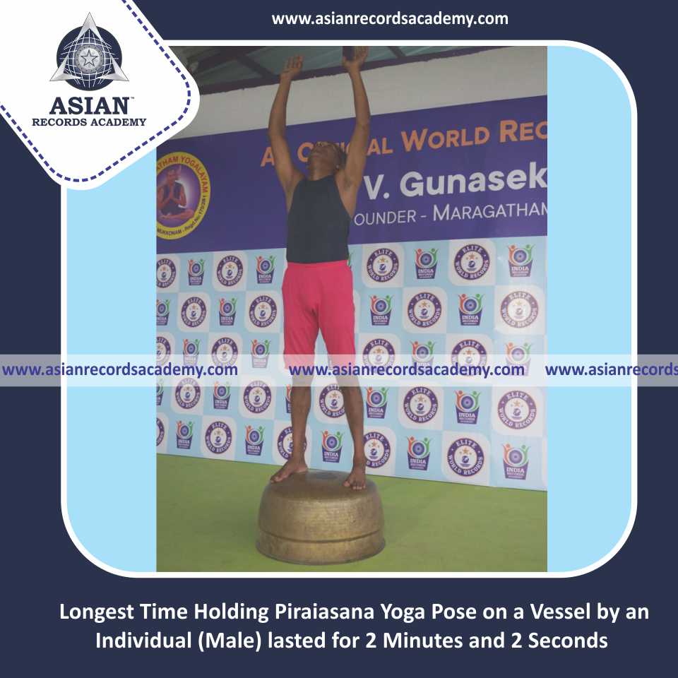 Longest Time Holding Pirai Chaturmukha Trikonasana Yoga Pose on a Vessel by an Individual (Male)