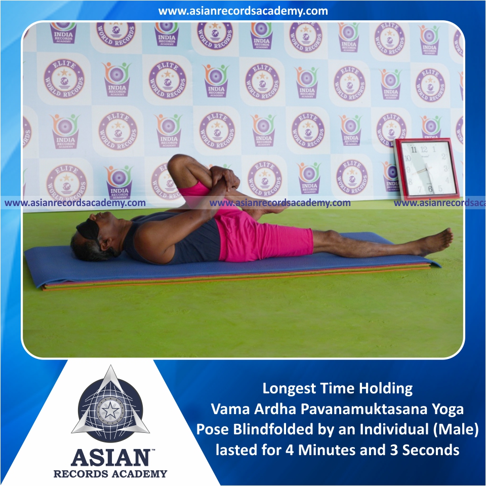 Longest Time Holding Vama Ardha Pavanamuktasana Yoga Pose Blindfolded by an Individual (Male)