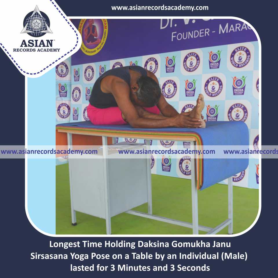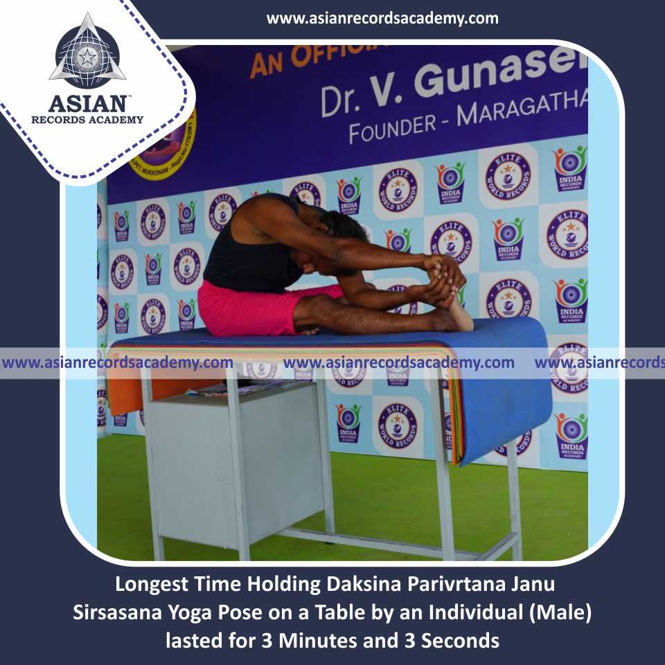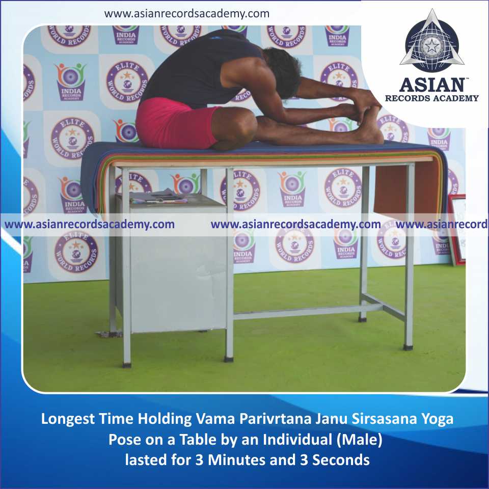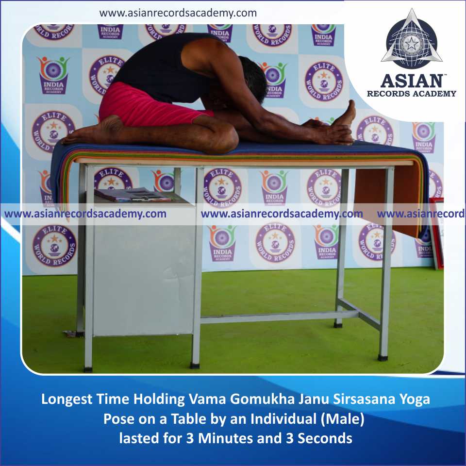 Longest Time Holding Vama Gomukha Janu Sirsasana Yoga Pose on a Table by an Individual (Male)