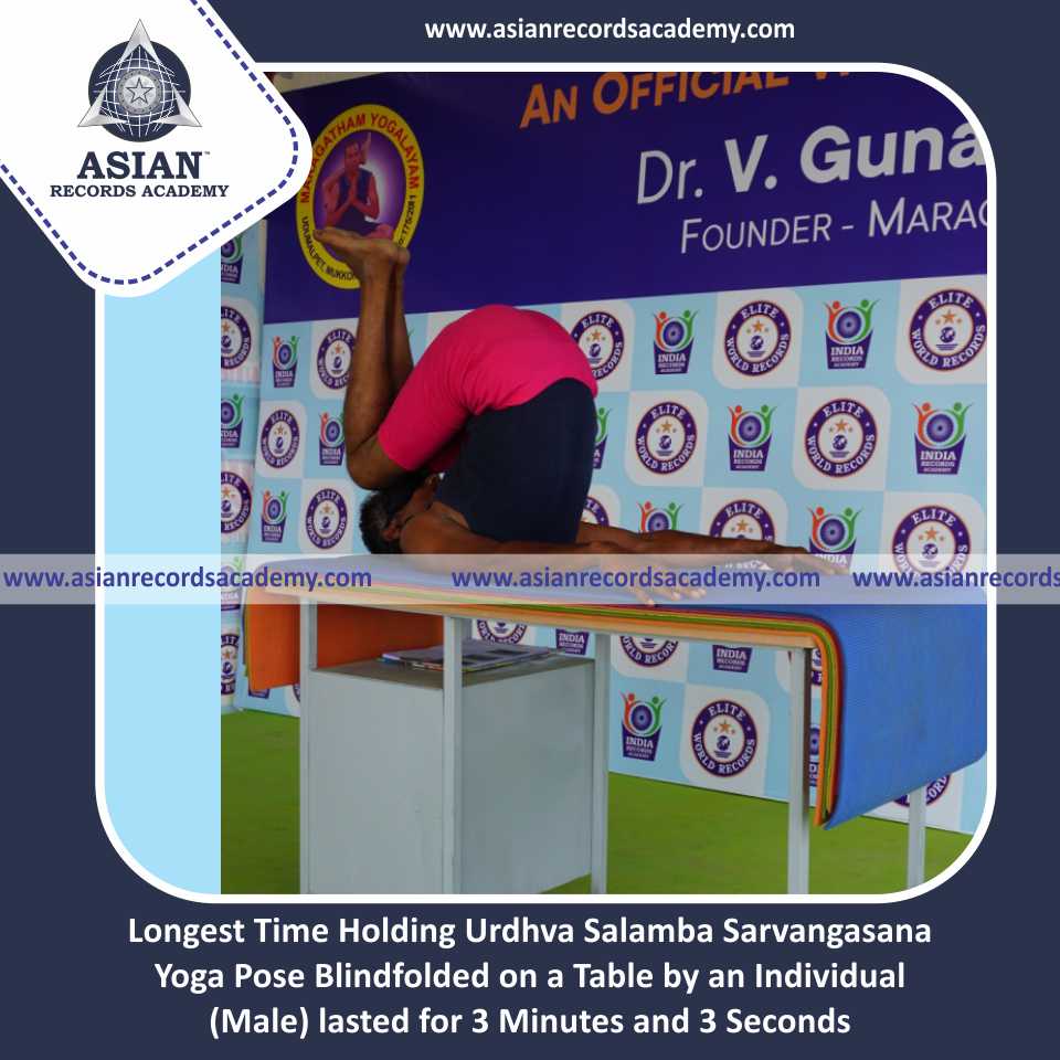Longest Time Holding Urdhva Salamba Sarvangasana Yoga Pose Blindfolded on a Table by an Individual (Male)