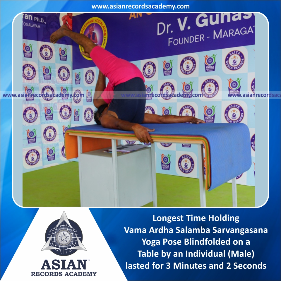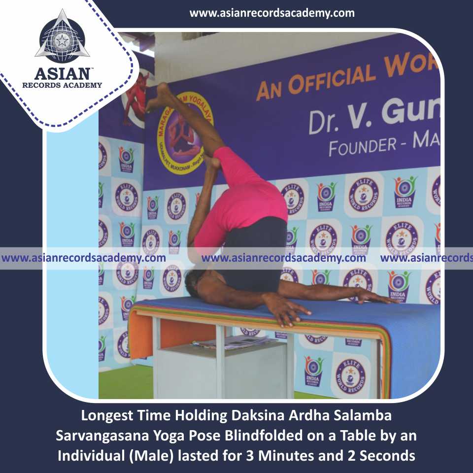 Longest Time Holding Vama Ardha Salamba Sarvangasana Yoga Pose Blindfolded on a Table by an Individual (Male)