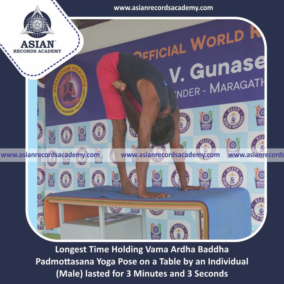 Longest Time Holding Vama Ardha Baddha Padmottasana Yoga Pose on a Table by an Individual (Male)