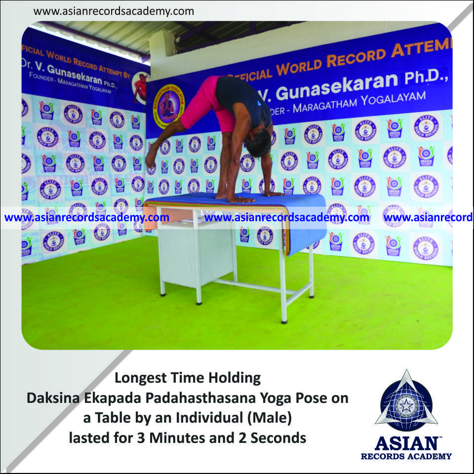 Longest Time Holding Daksina Ekapada Padahasthasana Yoga Pose on a Table by an Individual (Male)