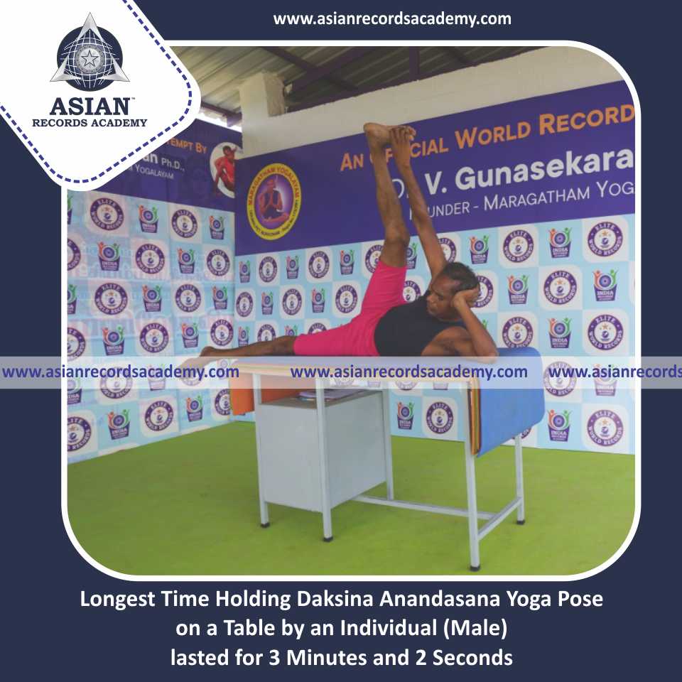 Longest Time Holding Daksina Anandasana Yoga Pose on a Table by an Individual (Male)