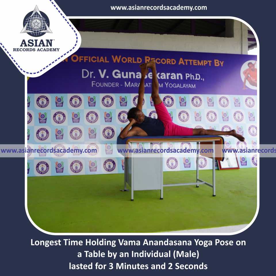 Longest Time Holding Vama Anandasana Yoga Pose on a Table by an Individual (Male)