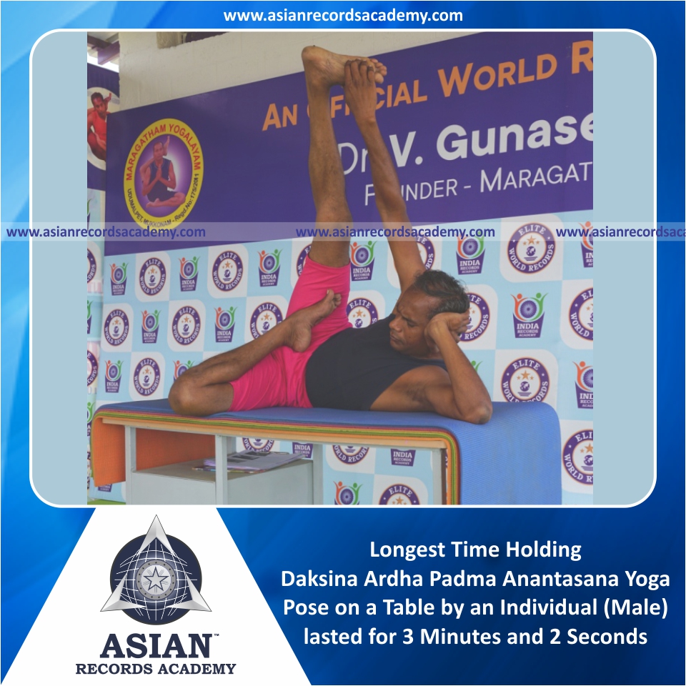 Longest Time Holding Daksina Ardha Padma Anantasana Yoga Pose on a Table by an Individual (Male)