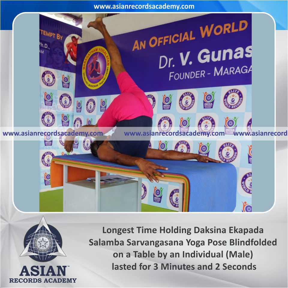 Longest Time Holding Daksina Ekapada Salamba Sarvangasana Yoga Pose Blindfolded on a Table by an Individual (Male)