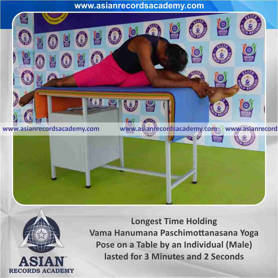 Longest Time Holding Vama Hanumana Paschimottanasana Yoga Pose on a Table by an Individual (Male)