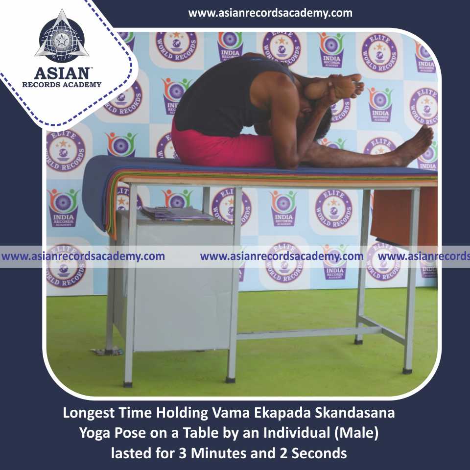 Longest Time Holding Vama Ekapada Skandasana Yoga Pose on a Table by an Individual (Male)