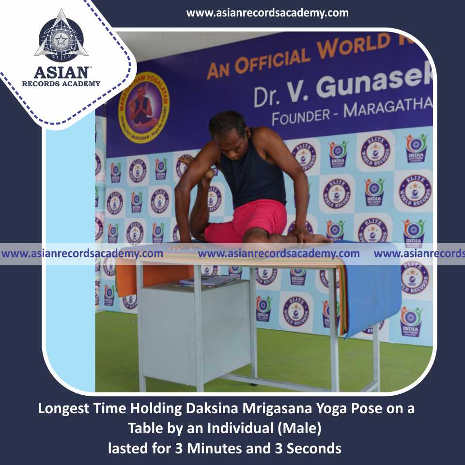Longest Time Holding Daksina Mrigasana Yoga Pose on a Table by an Individual (Male)