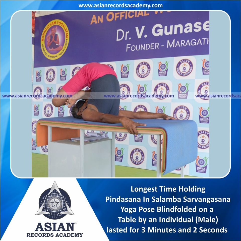 Longest Time Holding Pindasana In Salamba Sarvangasana Yoga Pose Blindfolded on a Table by an Individual (Male)