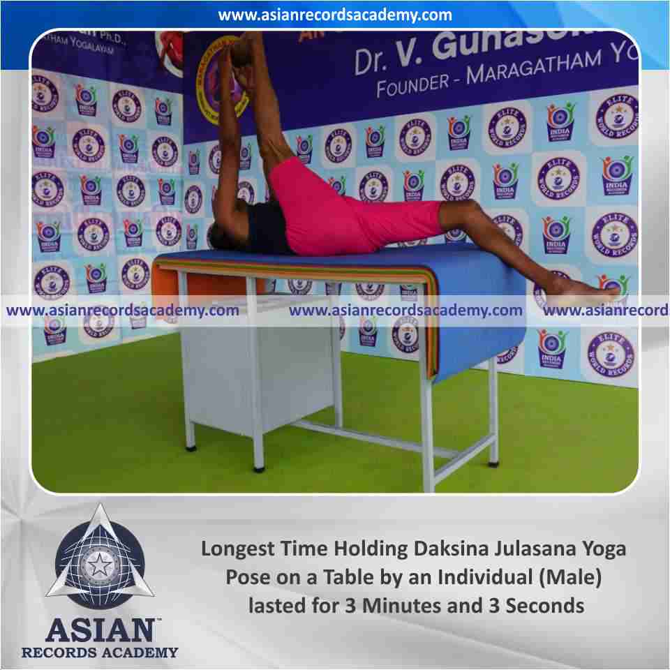 Longest Time Holding Daksina Julasana Yoga Pose on a Table by an Individual (Male)