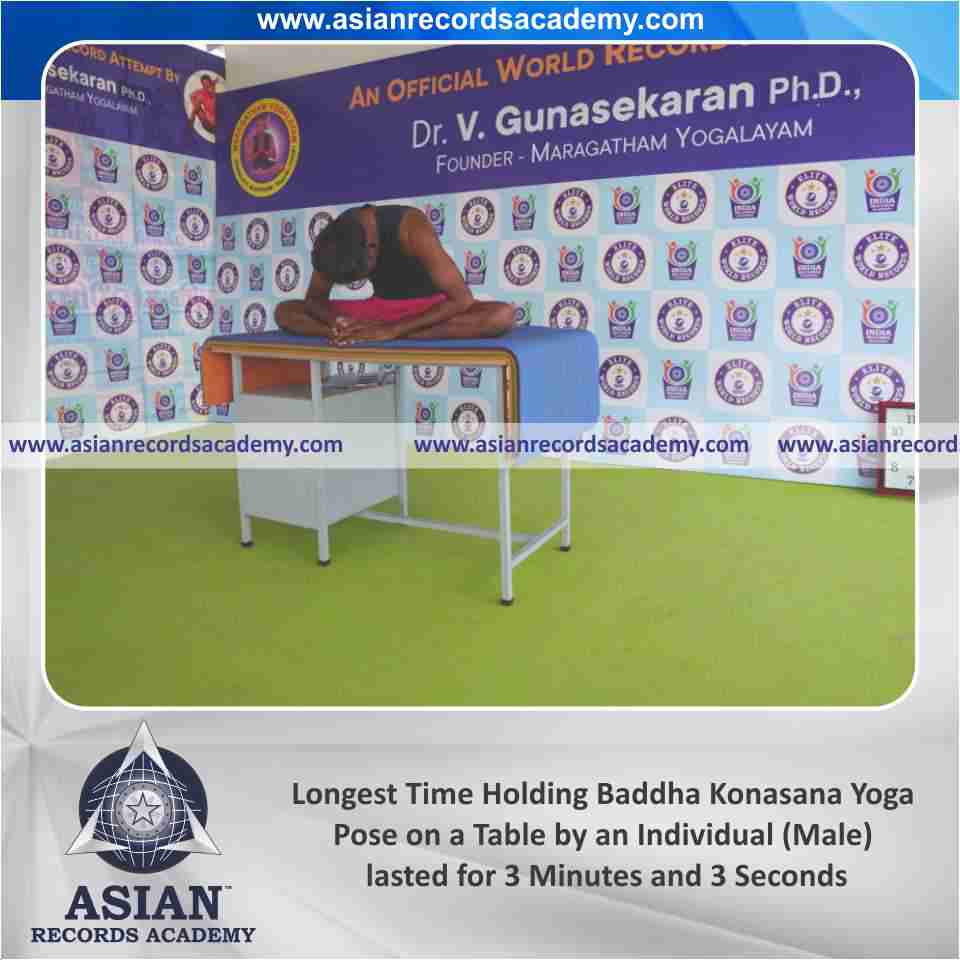 Longest Time Holding Baddha Konasana Yoga Pose on a Table by an Individual (Male)