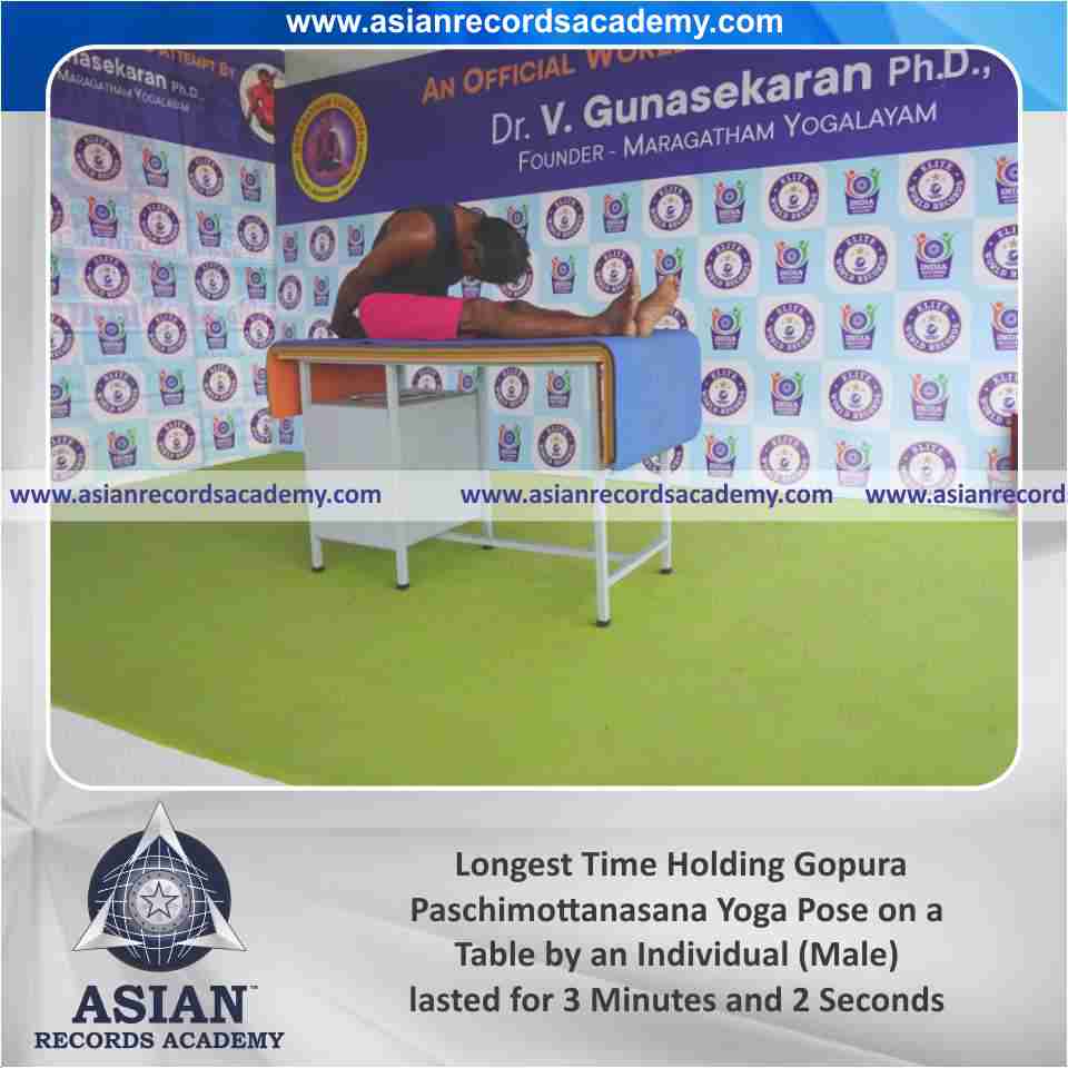 Longest Time Holding Gopura Paschimottanasana Yoga Pose on a Table by an Individual (Male)