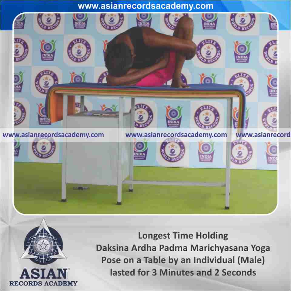 Longest Time Holding Daksina Ardha Padma Marichyasana Yoga Pose on a Table by an Individual (Male)