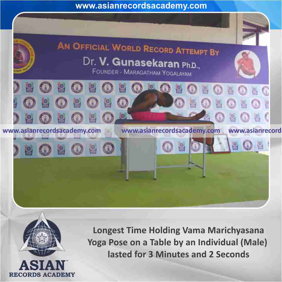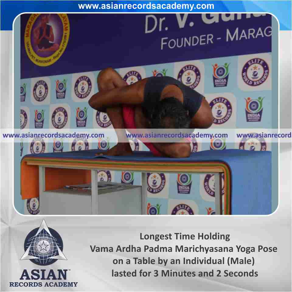 Longest Time Holding Vama Marichyasana Yoga Pose on a Table by an Individual (Male)