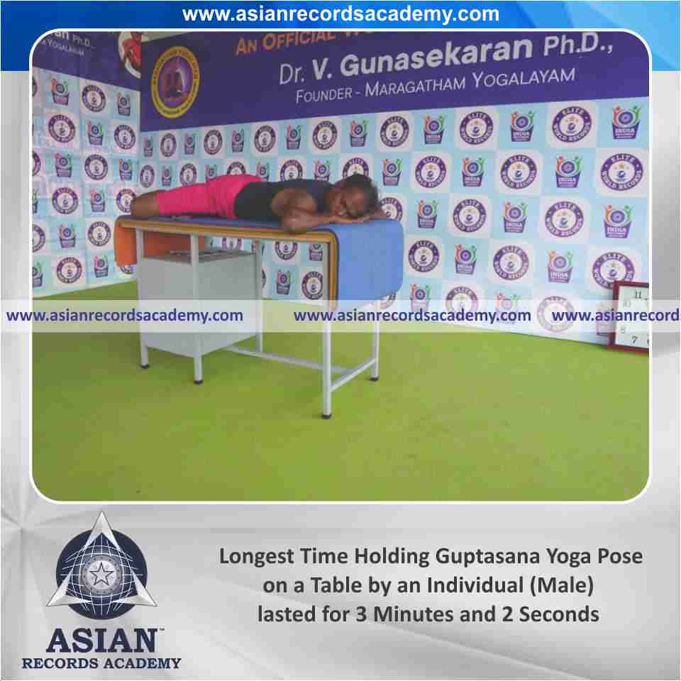 Longest Time Holding Guptasana Yoga Pose on a Table by an Individual (Male)
