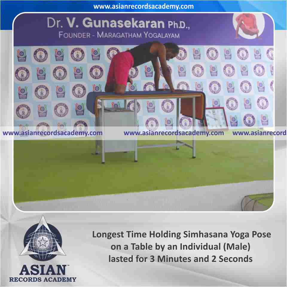 Longest Time Holding Simhasana Yoga Pose on a Table by an Individual (Male)