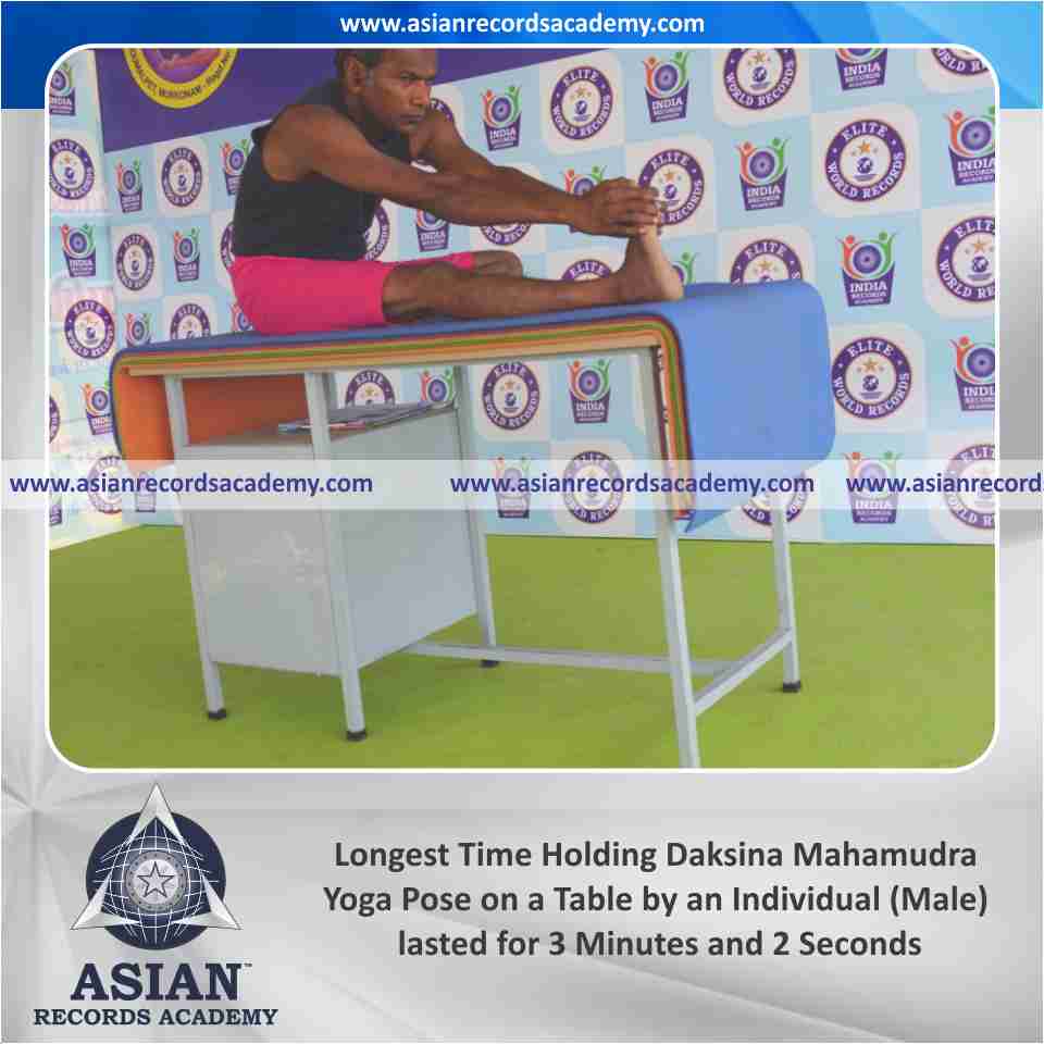 Longest Time Holding Daksina Mahamudra Yoga Pose on a Table by an Individual (Male)