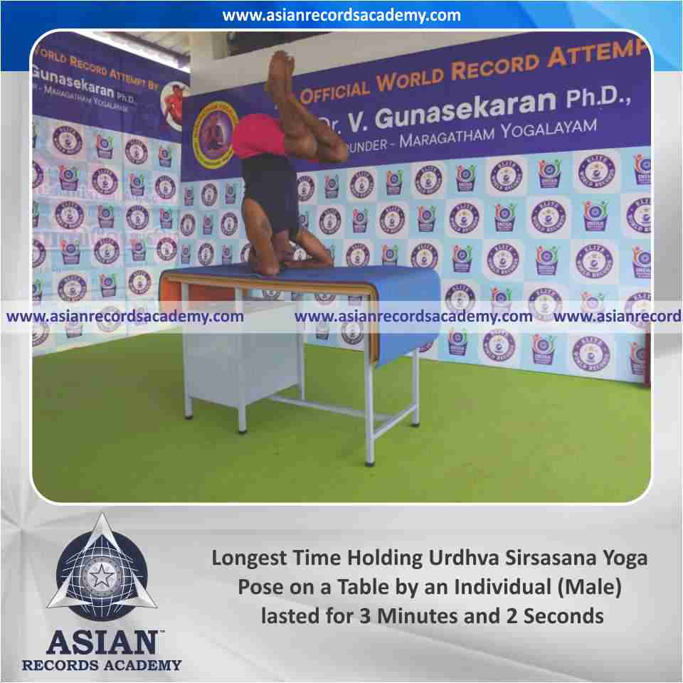 Longest Time Holding Urdhva Sirsasana Yoga Pose on a Table by an Individual (Male)