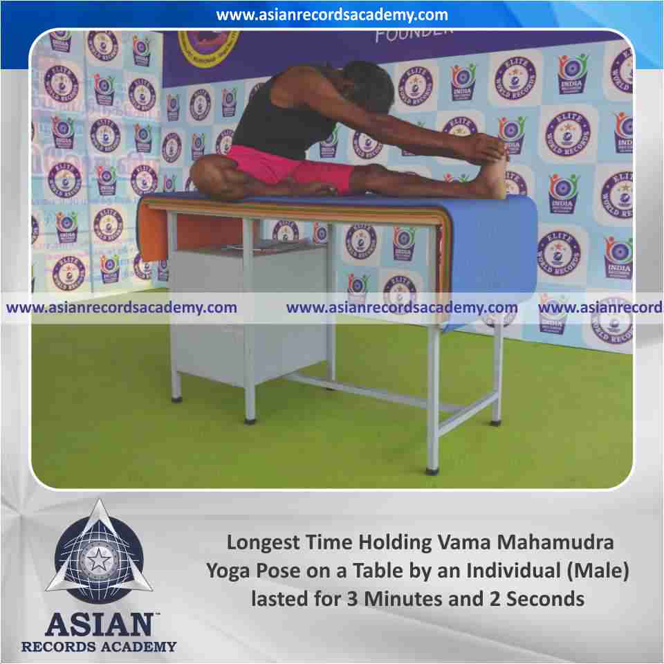 Longest Time Holding Vama Mahamudra Yoga Pose on a Table by an Individual (Male)