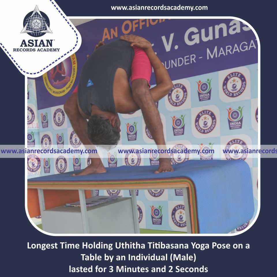 Longest Time Holding Uthitha Titibasana Yoga Pose on a Table by an Individual (Male)