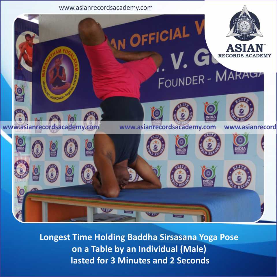 Longest Time Holding Baddha Sirsasana Yoga Pose on a Table by an Individual (Male)