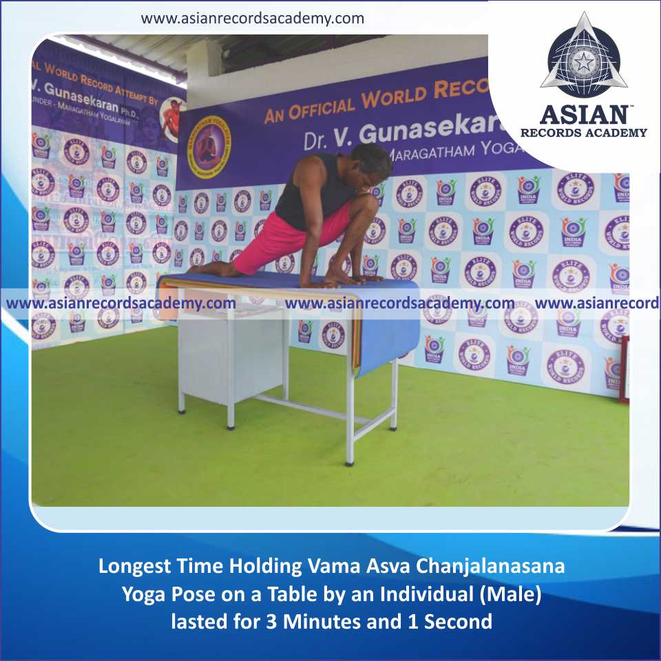 Longest Time Holding Vama Asva Chanjalanasana Yoga Pose on a Table by an Individual (Male)