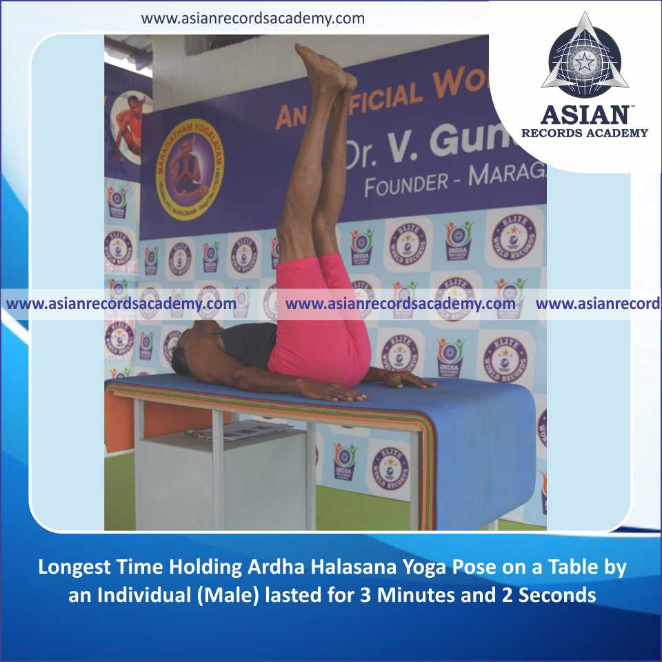 Longest Time Holding Ardha Halasana Yoga Pose on a Table by an Individual (Male)