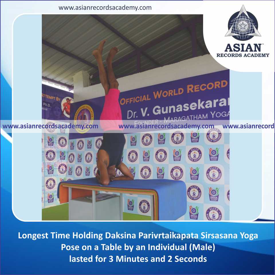Longest Time Holding Daksina Parivrtaikapata Sirsasana Yoga Pose on a Table by an Individual (Male)