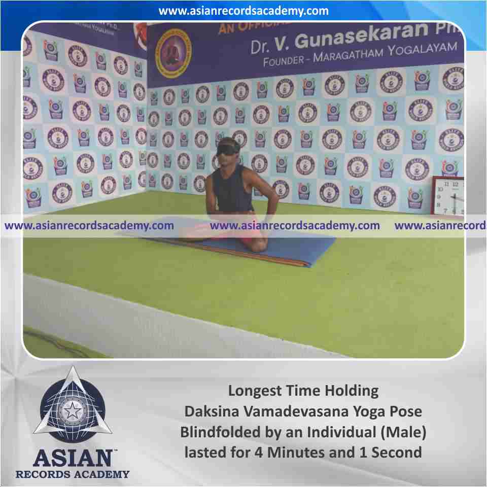 Longest Time Holding Daksina Vamadevasana Yoga Pose Blindfolded by an Individual (Male)