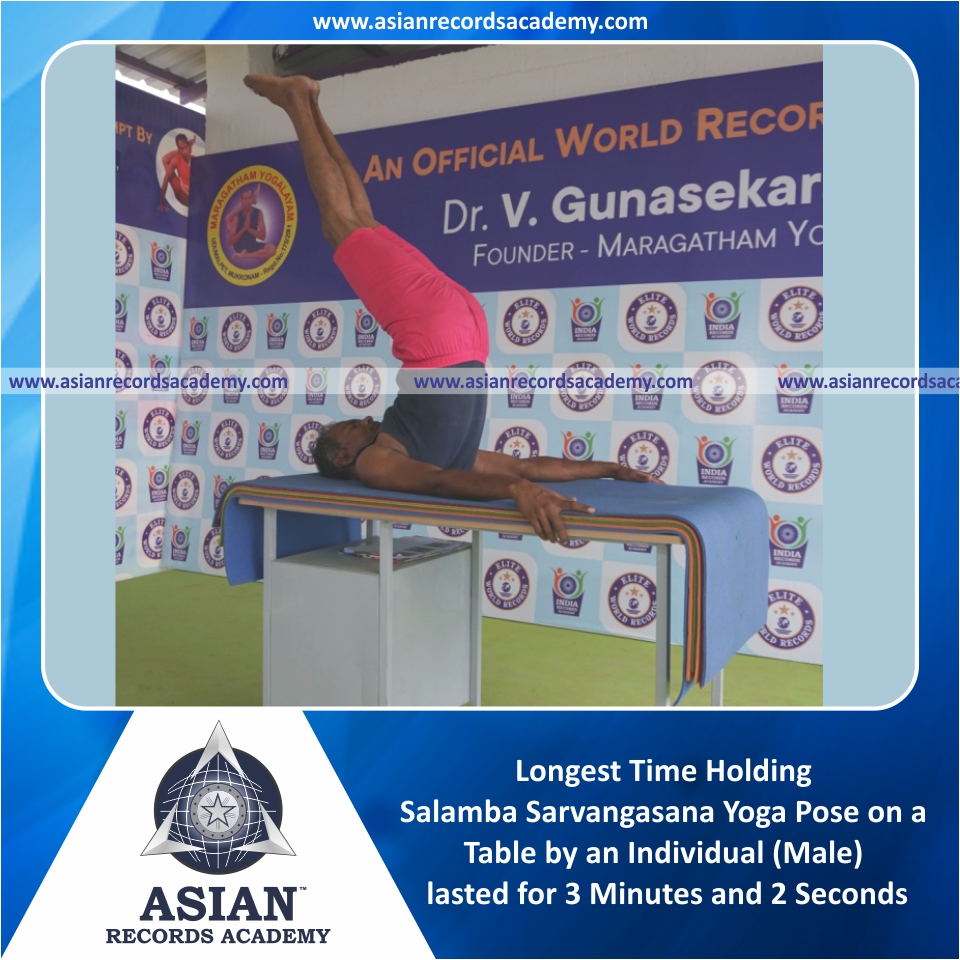 Longest Time Holding Salamba Sarvangasana Yoga Pose on a Table by an Individual (Male)