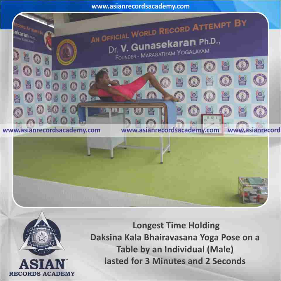 Longest Time Holding Daksina Kala Bhairavasana Yoga Pose on a Table by an Individual (Male)