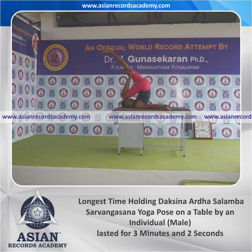 Longest Time Holding Daksina Ardha Salamba Sarvangasana Yoga Pose on a Table by an Individual (Male)