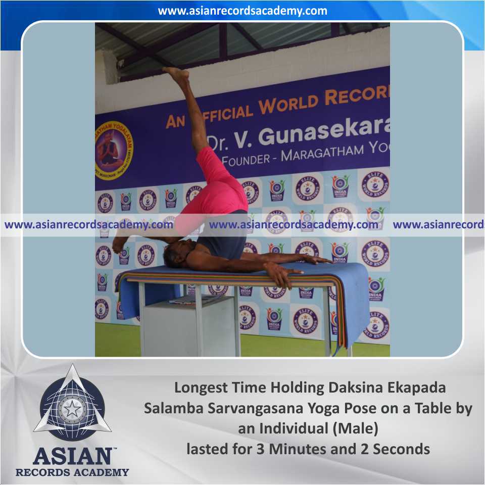 Longest Time Holding Daksina Ekapada Salamba Sarvangasana Yoga Pose on a Table by an Individual (Male)