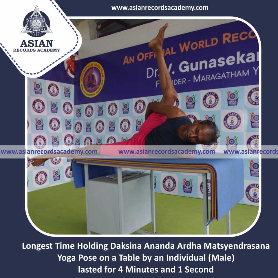 Longest Time Holding Daksina Ananda Ardha Matsyendrasana Yoga Pose on a Table by an Individual (Male)