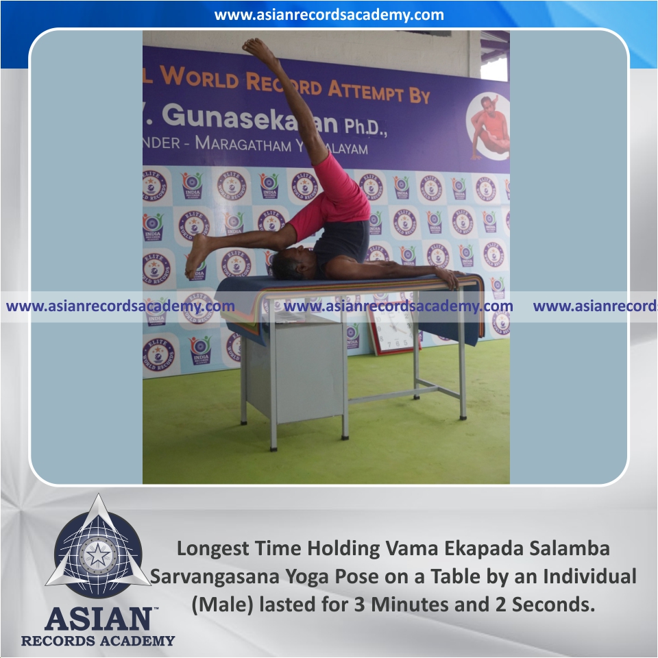Longest Time Holding Vama Ekapada Salamba Sarvangasana Yoga Pose on a Table by an Individual (Male)