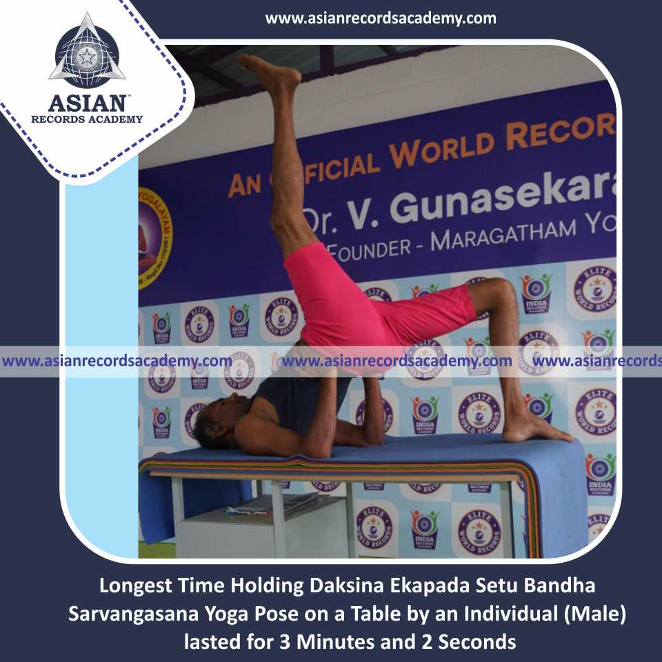Longest Time Holding Daksina Ekapada Setu Bandha Sarvangasana Yoga Pose on a Table by an Individual (Male)