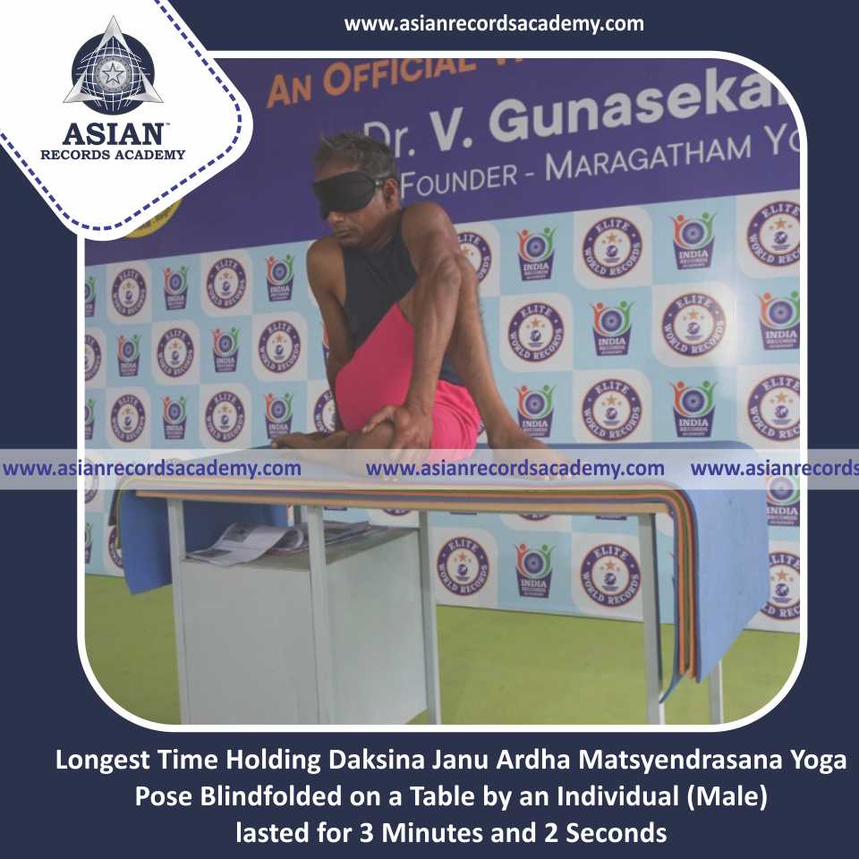 Longest Time Holding Daksina Janu Ardha Matsyendrasana Yoga Pose Blindfolded on a Table by an Individual (Male)