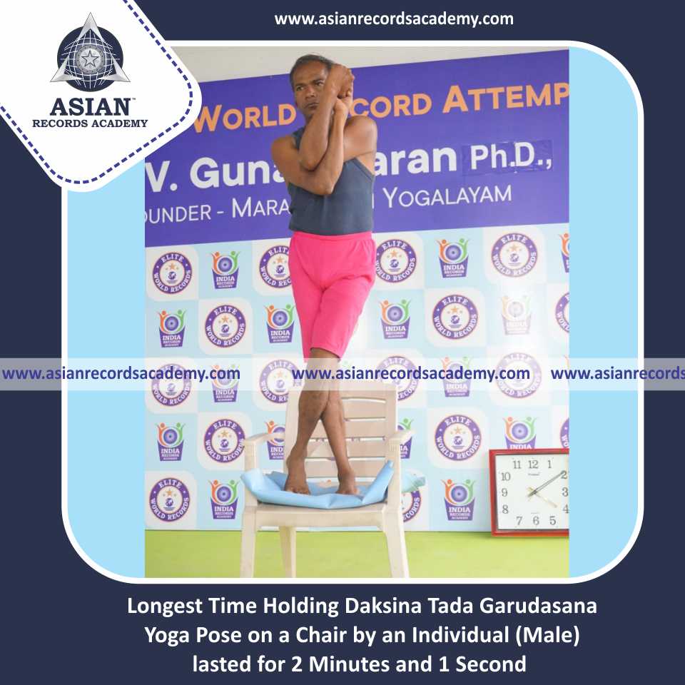 Longest Time Holding Daksina Tada Garudasana Yoga Pose on a Chair by an Individual (Male)