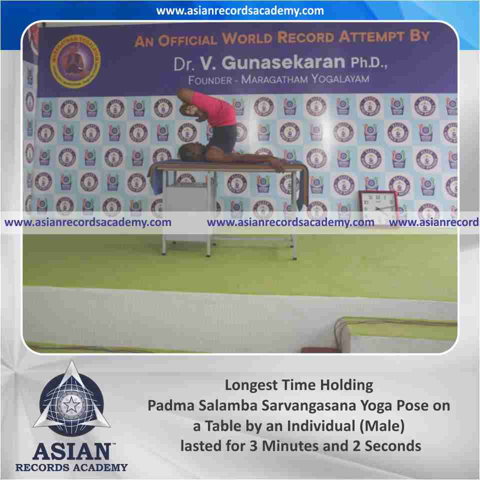 Longest Time Holding Padma Salamba Sarvangasana Yoga Pose on a Table by an Individual (Male)