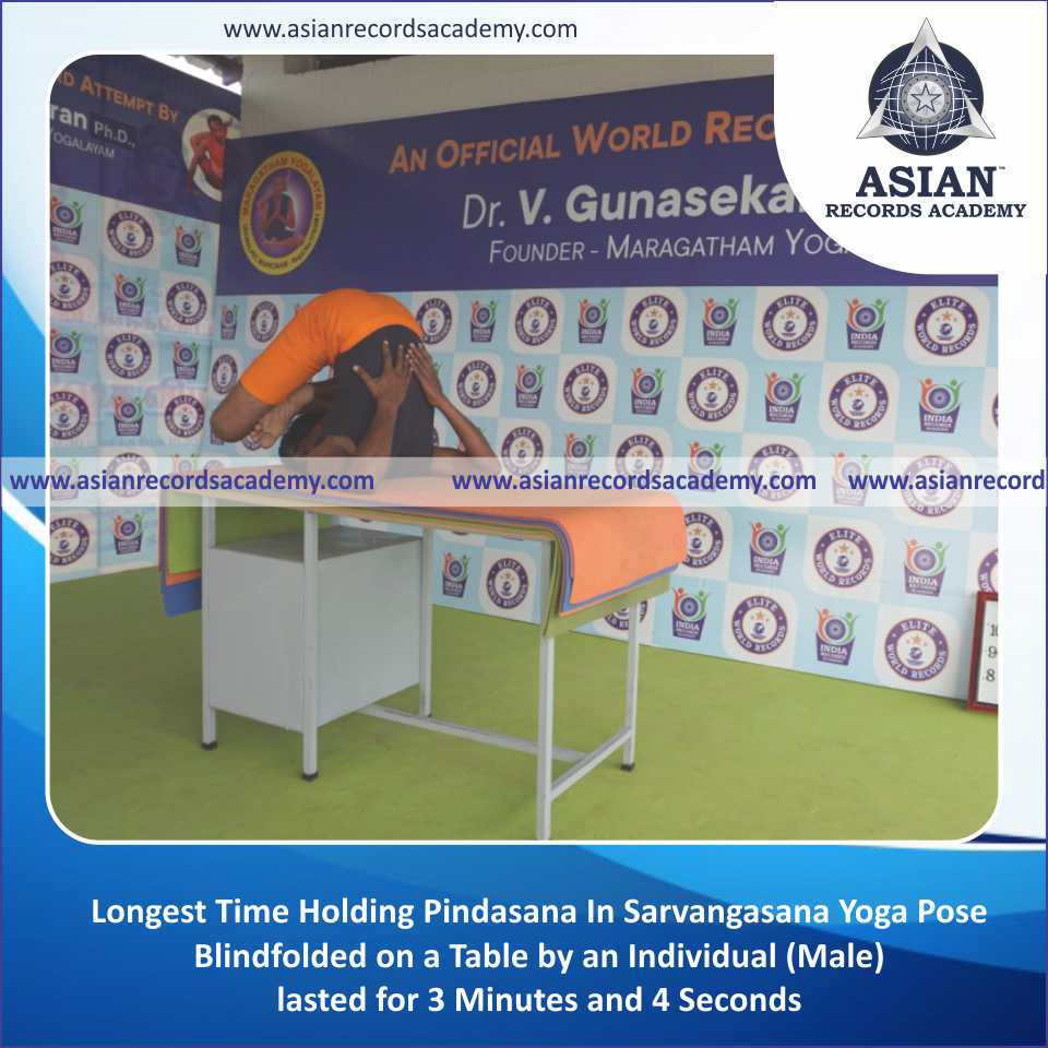Longest Time Holding Pindasana In Sarvangasana Yoga Pose Blindfolded on a Table by an Individual (Male)