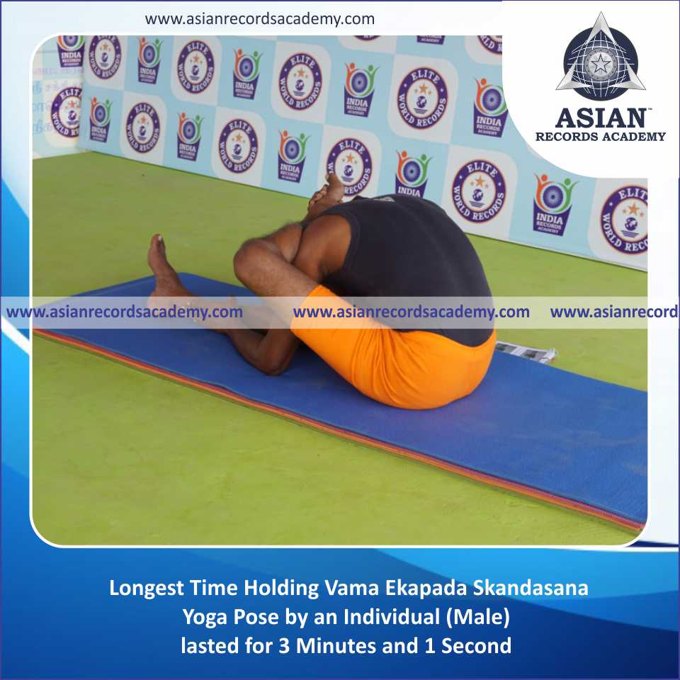 Longest Time Holding Vama Ekapada Skandasana Yoga Pose by an Individual (Male)