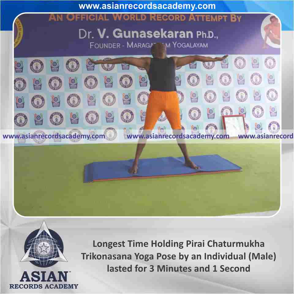 Longest Time Holding Pirai Chaturmukha Trikonasana Yoga Pose by an Individual (Male)
