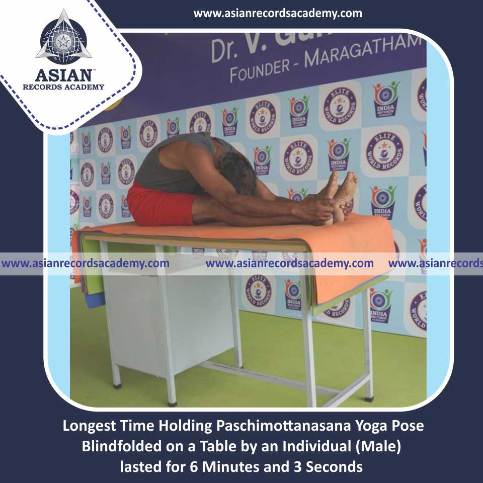 Longest Time Holding Paschimottanasana Yoga Pose Blindfolded on a Table by an Individual (Male)
